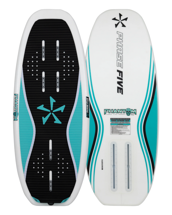The Phase Five Phantom shape has entered into our foil lineup of boards. Designed by Parker Payne, he brought a few unique ideas to enhance the overall design on our foil boards and they are featured on the Phantom foil. Starting with the sizing, the Phantom Foil is 48” which is a shrunk down version of what he normally rides wakesurfing, but this gives him more control over the foil for his technical riding style. The Phantom Foil also features an increased nose rocker pattern to help the board from cavitation. While this board is looked at as a very technical ride, it’s an easy board to ride with it’s nice wide outline for your everyday foiler. This foil board is glassed with our ultra-durable Foilite construction for unmatched strength and durability. The Phase Five Phantom Foil board utilizes an adjustable 10.75” long reinforced track mount system for the foil.
